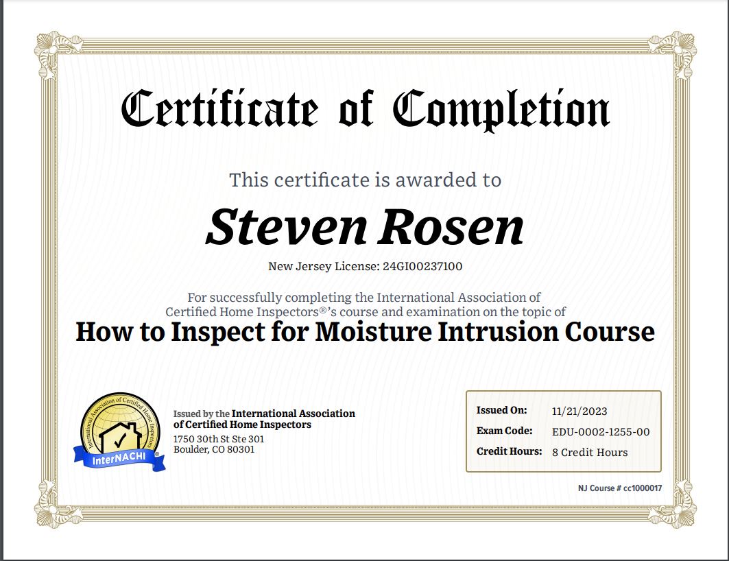 Water and Moisture Intrusion Inspection (Water Leaks) at the Jersey Shore in Monmouth County and all of NJ.